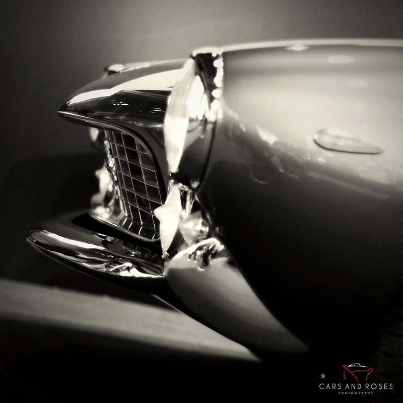 Magnifique cliché de l’avant d’une Ferrari 250 GT, La photographie est prise à Paris.