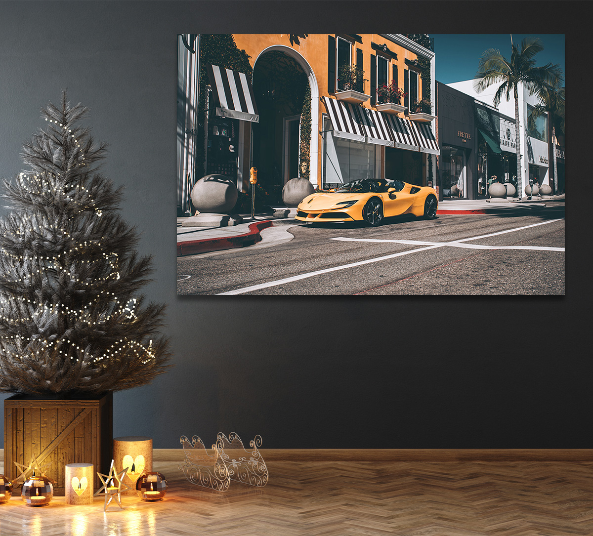 Ce tableau photographique de voiture italienne combine à la perfection l’élégance du design Ferrari avec l’atmosphère décontractée californienne. Sur vos murs, cette œuvre devient une déclaration de style et de passion pour l’excellence automobile. Parfaite pour un bureau d’architecte, un espace de coworking premium ou le salon d’un passionné d’automobiles.